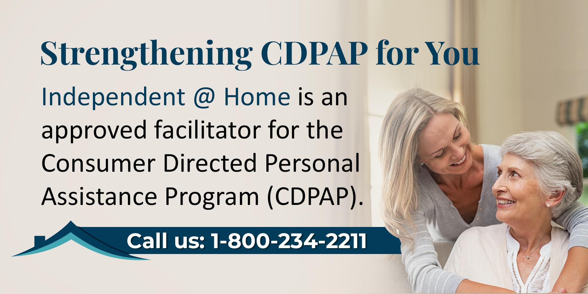 Independent @ Home will reach out to you to start the transition and make sure you are all set to continue with CDPAP. However, you do not have to wait to hear from us. Starting January 6, 2025, you can call us at 1-800-234-2211 or email us at Independent@independenthcs.org.